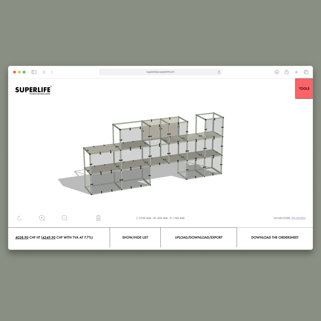 A web platform allowing Superlife customers to create and customize their own shelves in 3D