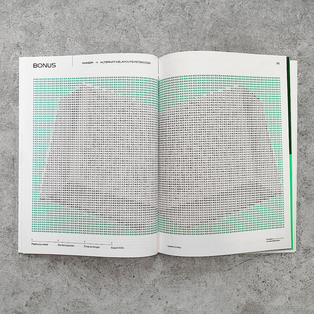Alternative Layout System, a project blending graphic design and creative programming in the form of a series of InDesign scripts for designer Giliane Cachin.