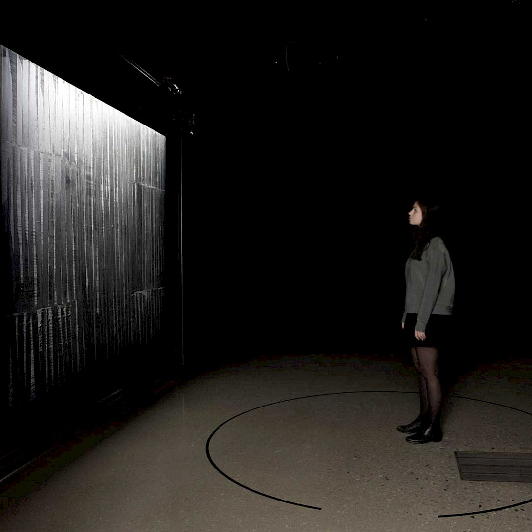 Cette expérience physique est une illustration de la relation entre la lumière, l'observateur et la peinture et de son importance dans l'œuvre de Soulages. La position de l'observateur est suivie en temps réel et influence l'éclairage du tableau.