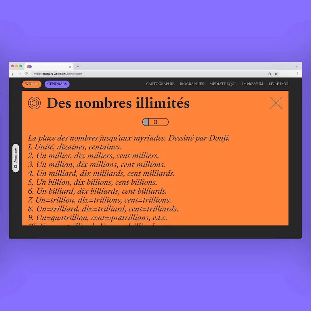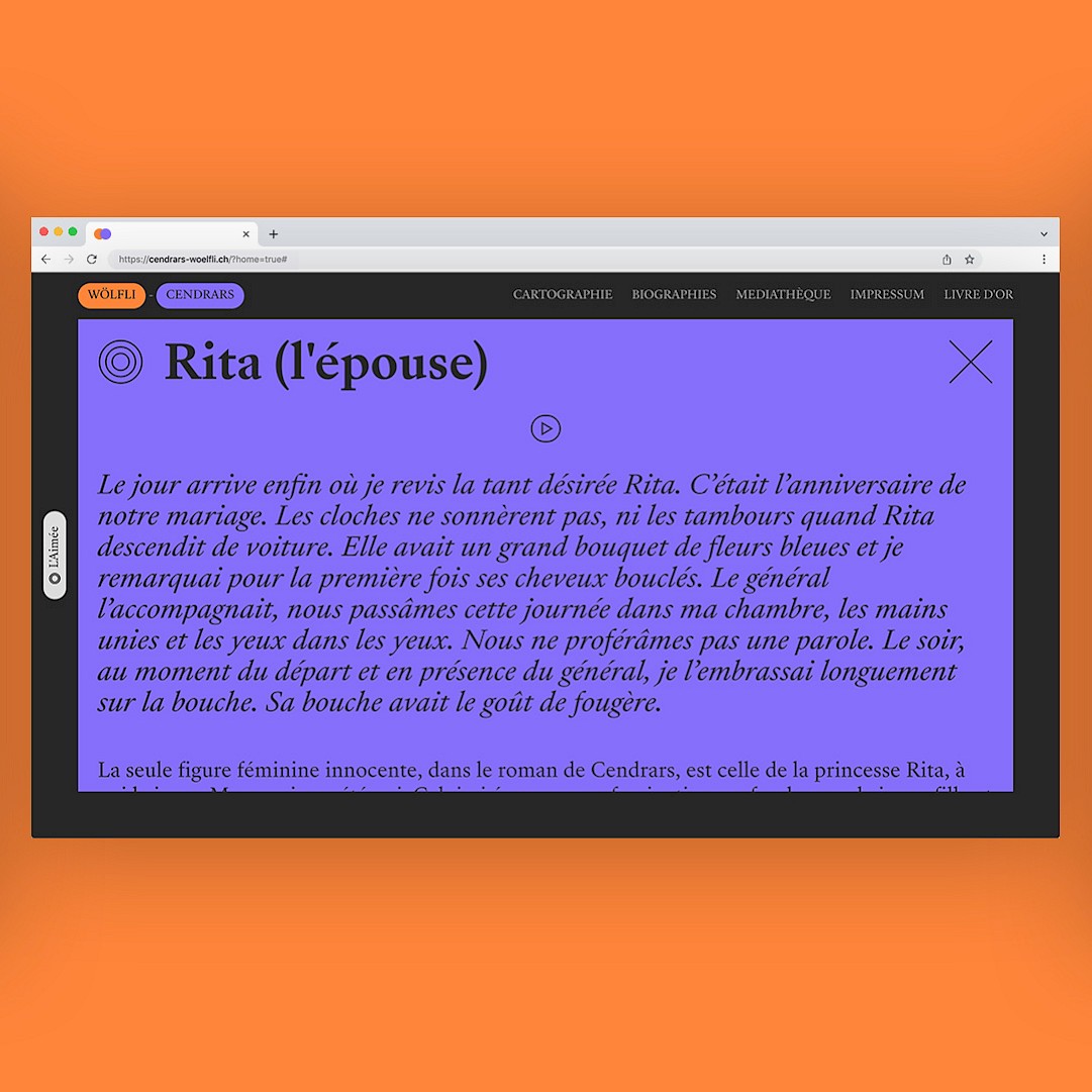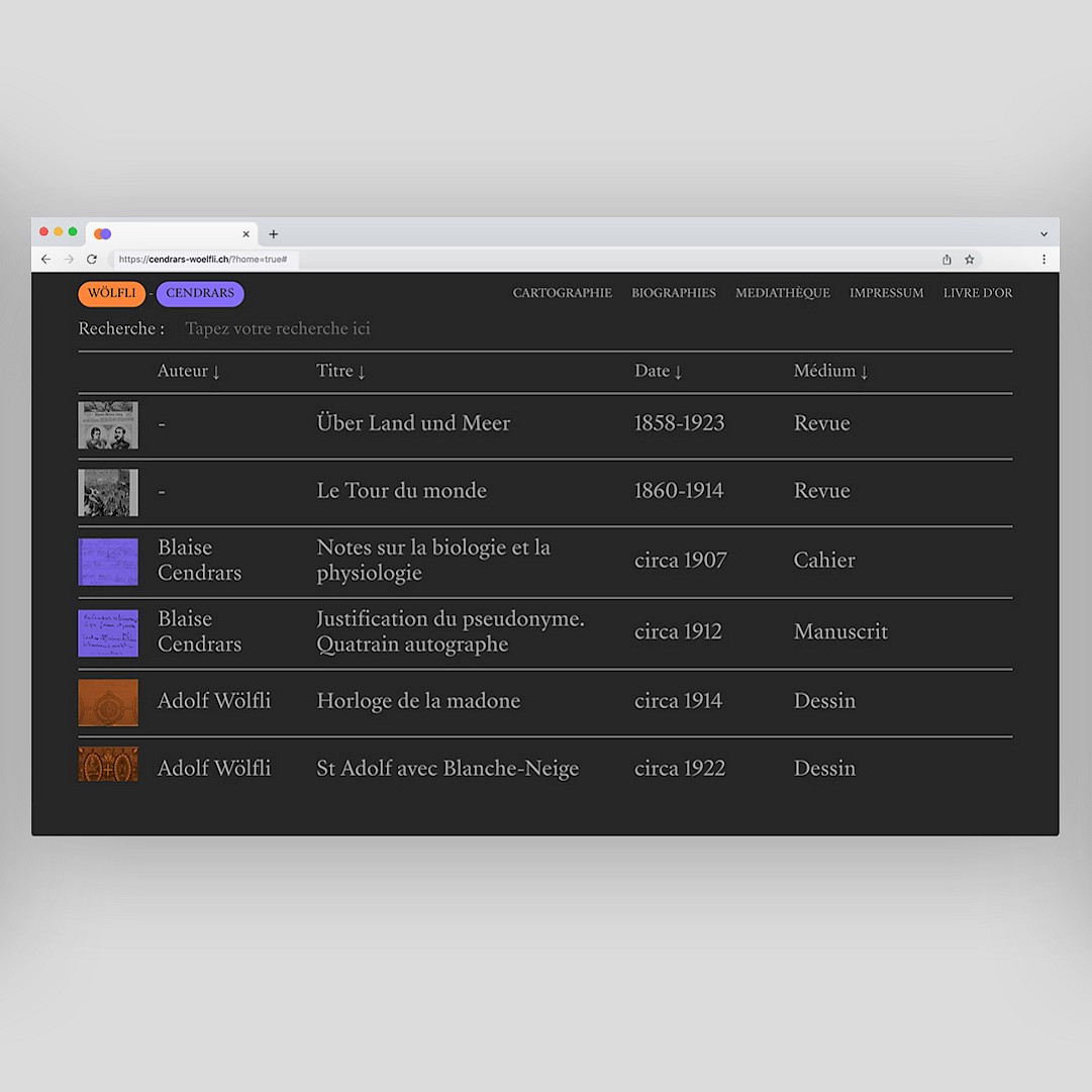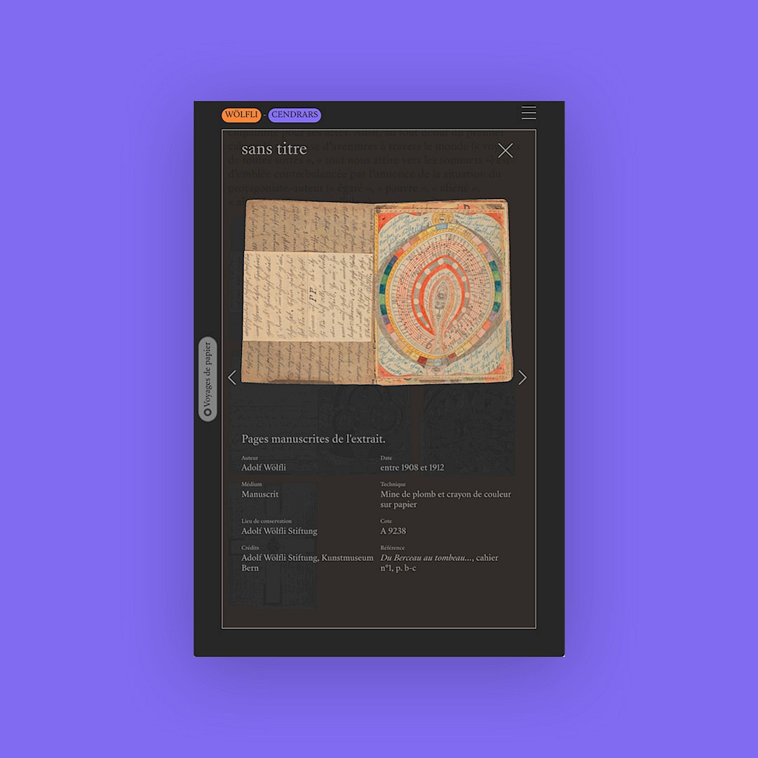 INT a été commissionné par la fondation Blaise Cendrars pour créer une exposition virtuelle mettant en relation deux artistes majeurs du XXe siècle: l’auteur d’art brut Adolf Wölfli et l’écrivain Blaise Cendrars.
