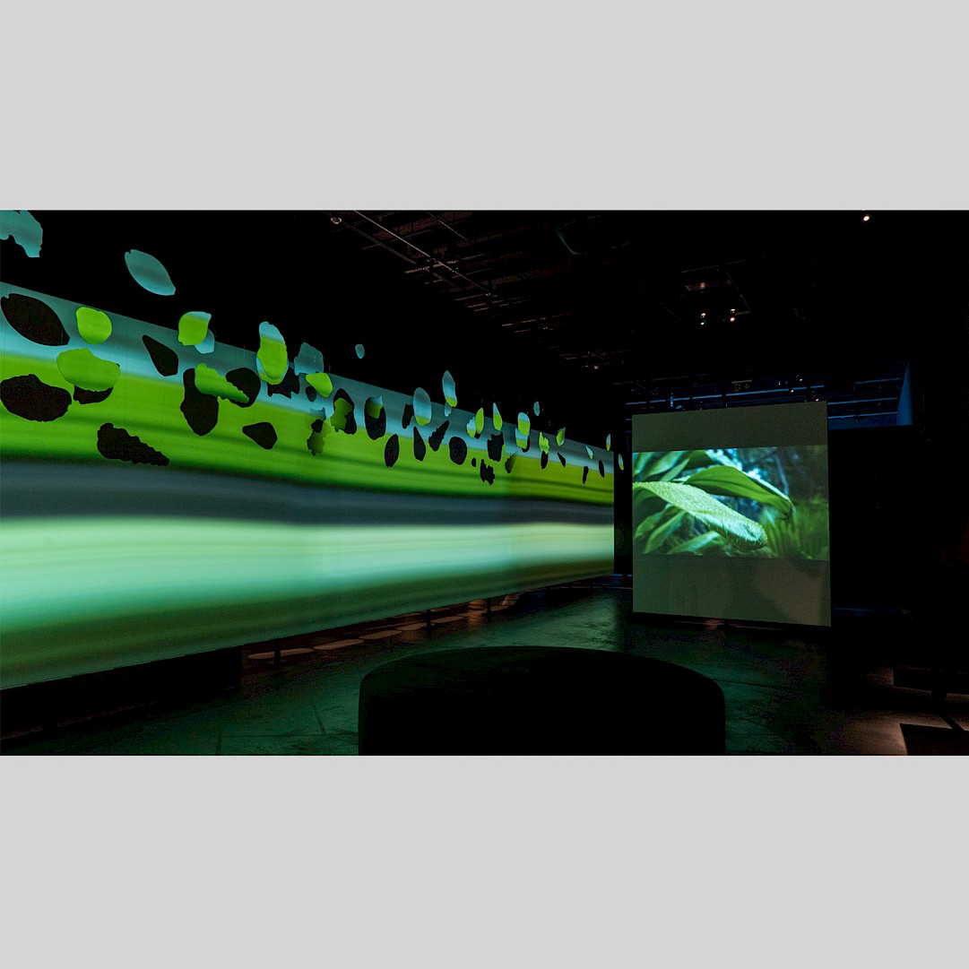 INT studio collaborated with the scenographer Adrien Rovero on the realisation of three media installations which accompany the eco-conception of his scenography for the exhibition entitled “Injustice environnementale - Alternatives autochtones” at MEG.