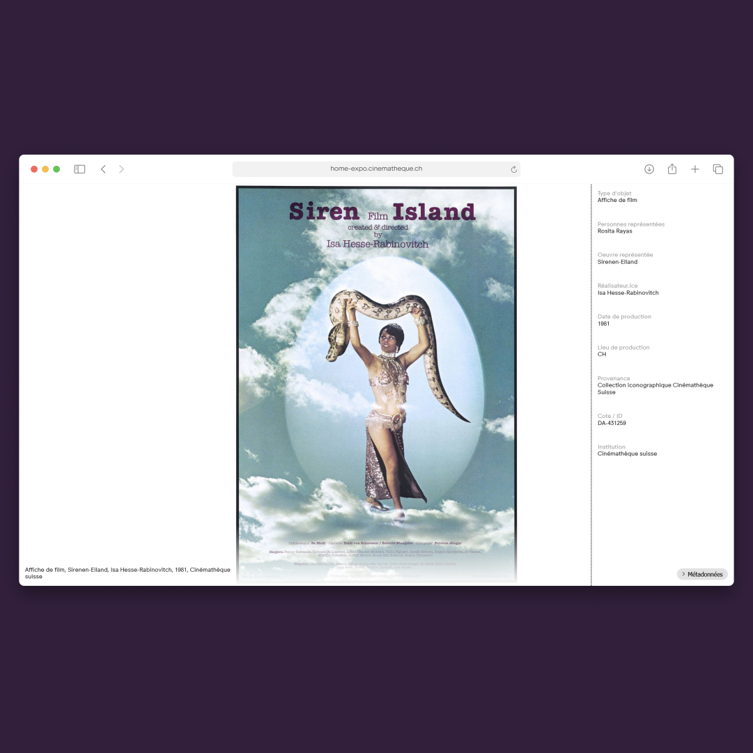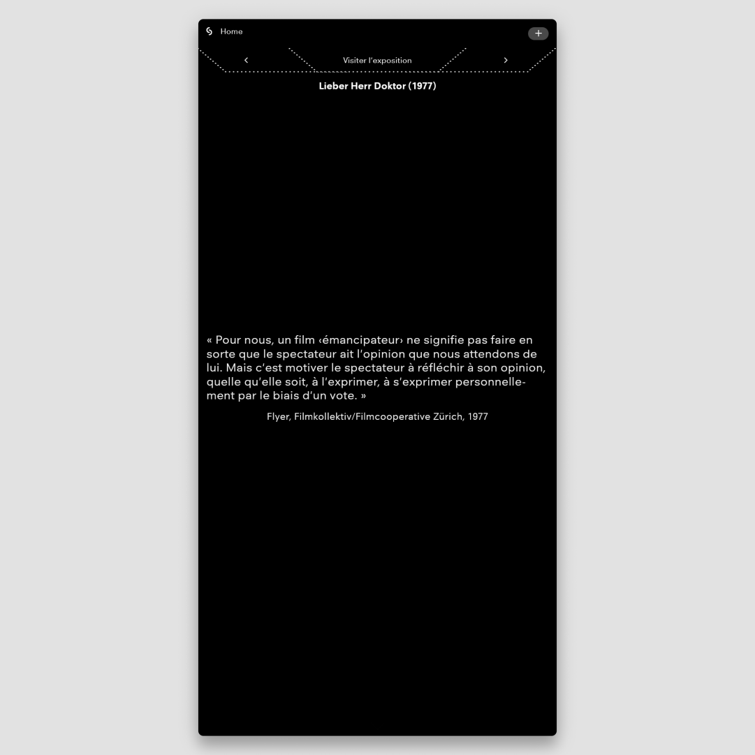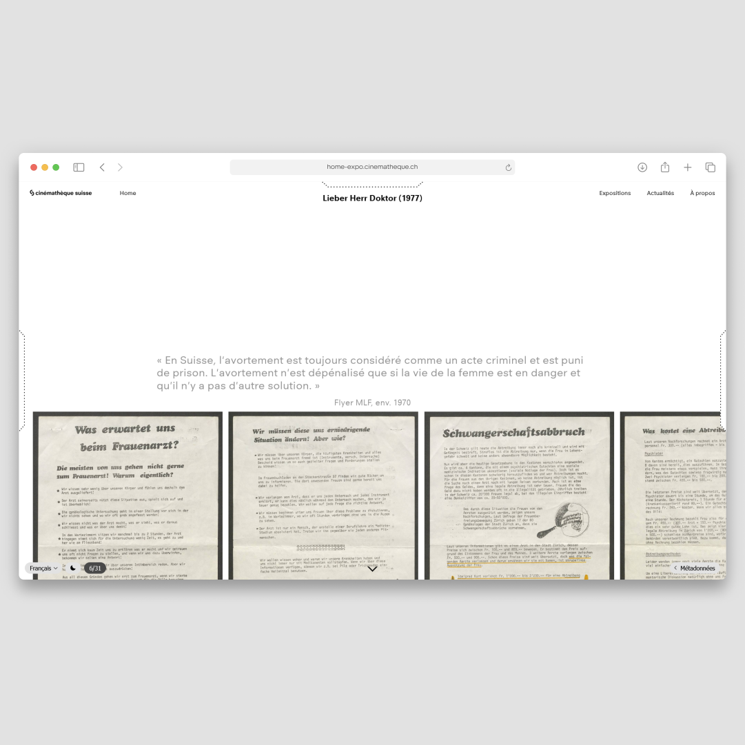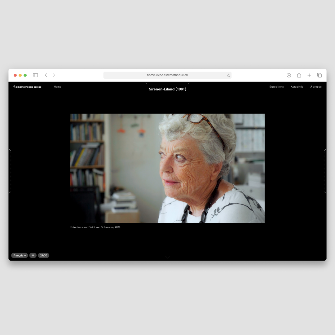 La plateforme Home propose des expositions virtuelles consacrées à l’histoire du cinéma suisse, s’appuyant sur des recherches approfondies menées dans les archives de la Cinémathèque suisse.