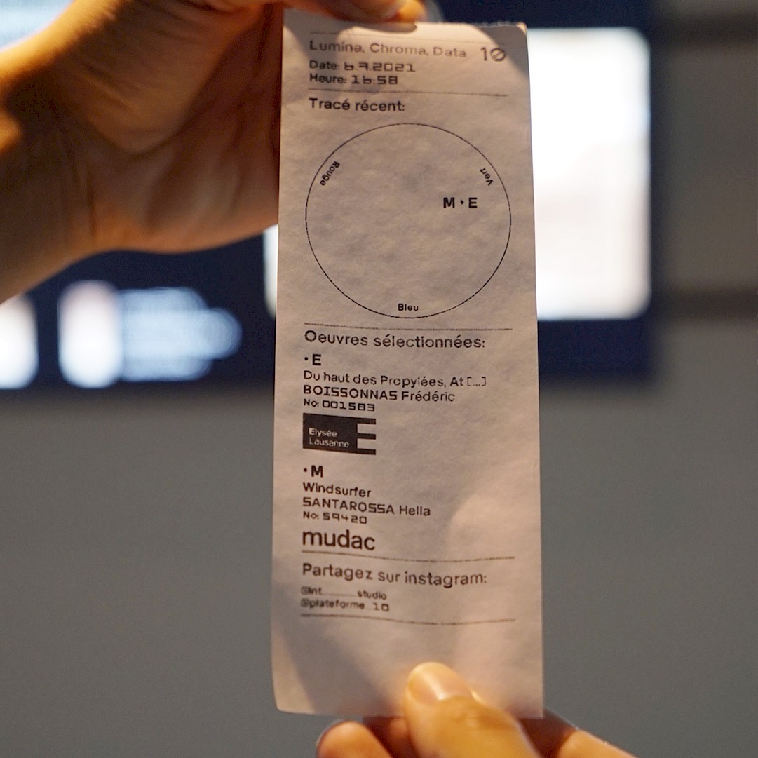 "l'après-visite" permet aussi aux visiteurs de repartir avec un souvenir imprimé, leur donnant des informations sur les paires d'oeuvres sélectionnées grâce à une imprimante thermique.