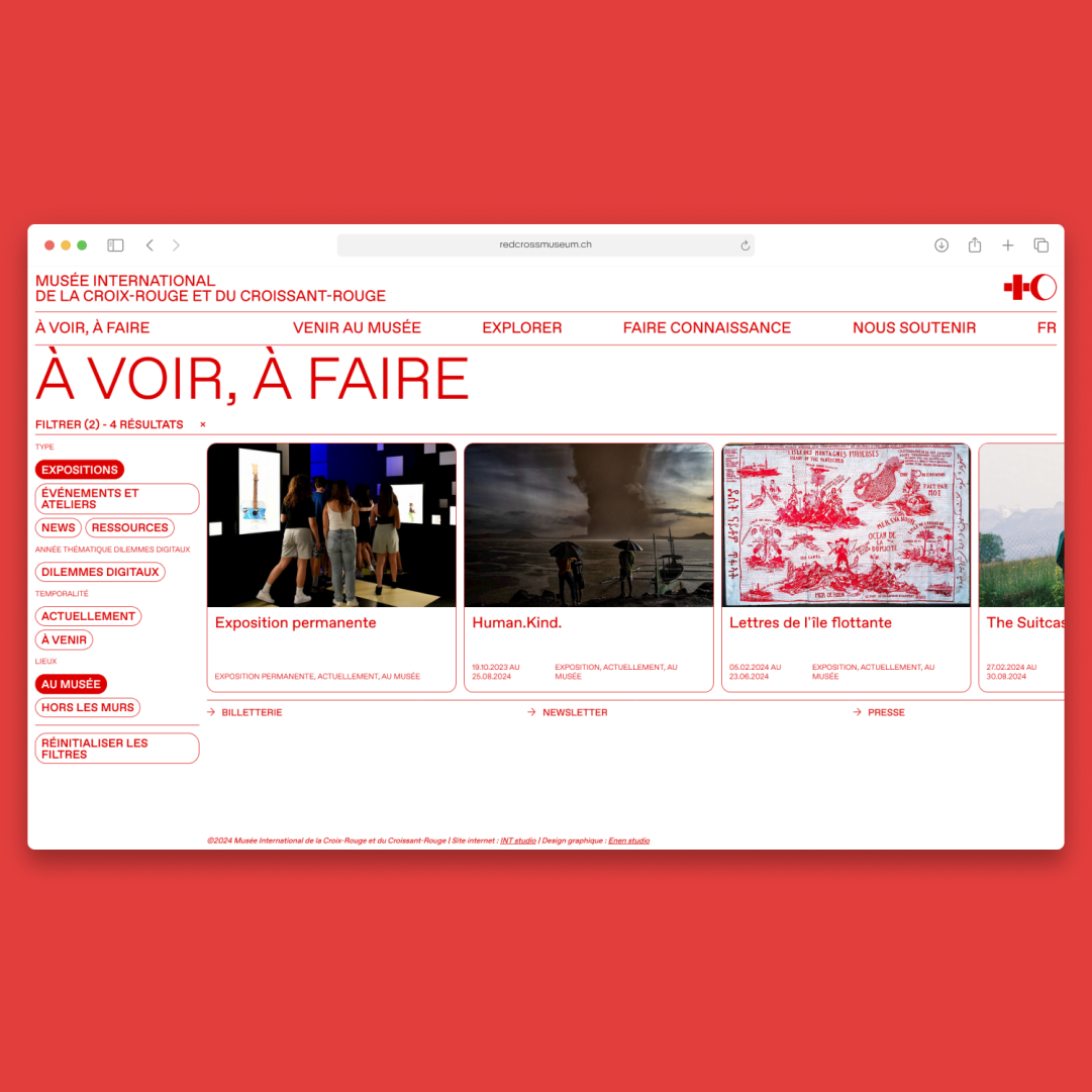 Nous avons été sélectionnés pour développer le nouveau site web du Musée de la Croix-Rouge à Genève. Nos tâches comprenaient le design UI & UX et le développement technique (incluant un CMS avec des plugins personnalisés) de la plateforme. L'objectif était de renforcer et de mettre en valeur la présence en ligne du musée tout en jouant un rôle essentiel dans la communication des événements physiques du musée.