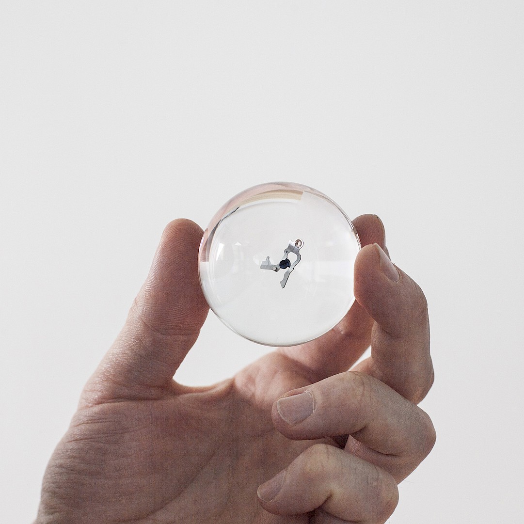Each part or assembled set of components is enclosed in a transparent acrylic glass sphere, acting both as preservation and allowing visitors to safely handle the delicate elements. These spheres can be placed on a lit opening integrated into the installation, where a macro camera and advanced image recognition system capture the object in real time. On-screen, the movement is magnified and augmented with contextual information detailing its function and placement within a larger mechanism.